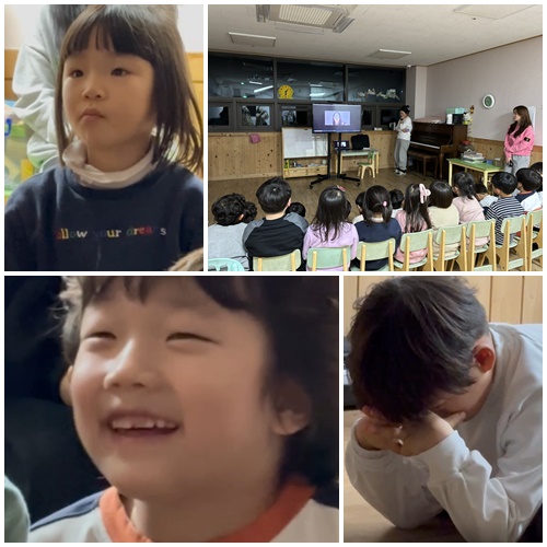 부모님들의 깜짝 선물도 있었습니다. 졸업캠프를 하는 아이들에게 보내주신 영상편지! 7살 아이들은 캠프 때마다 부모님들께서 손편지를 보내주시는데요. 이번 캠프에는 영상편지를 통해 직접 이야기하시는 모습을 친구들과 함께 볼 수 있었습니다. 엄마아빠가 보고 싶어 아주 조금이지만 눈물을 흘린 아이들도 있었지만, 아이들이 부모님을 보고파 하는 애달픈 표정에서 행복한 표정까지, 영상이 흘러 나오는 동안 아이들의 표정을 관찰하는 시간이 교사들도 참으로 행복했습니다.