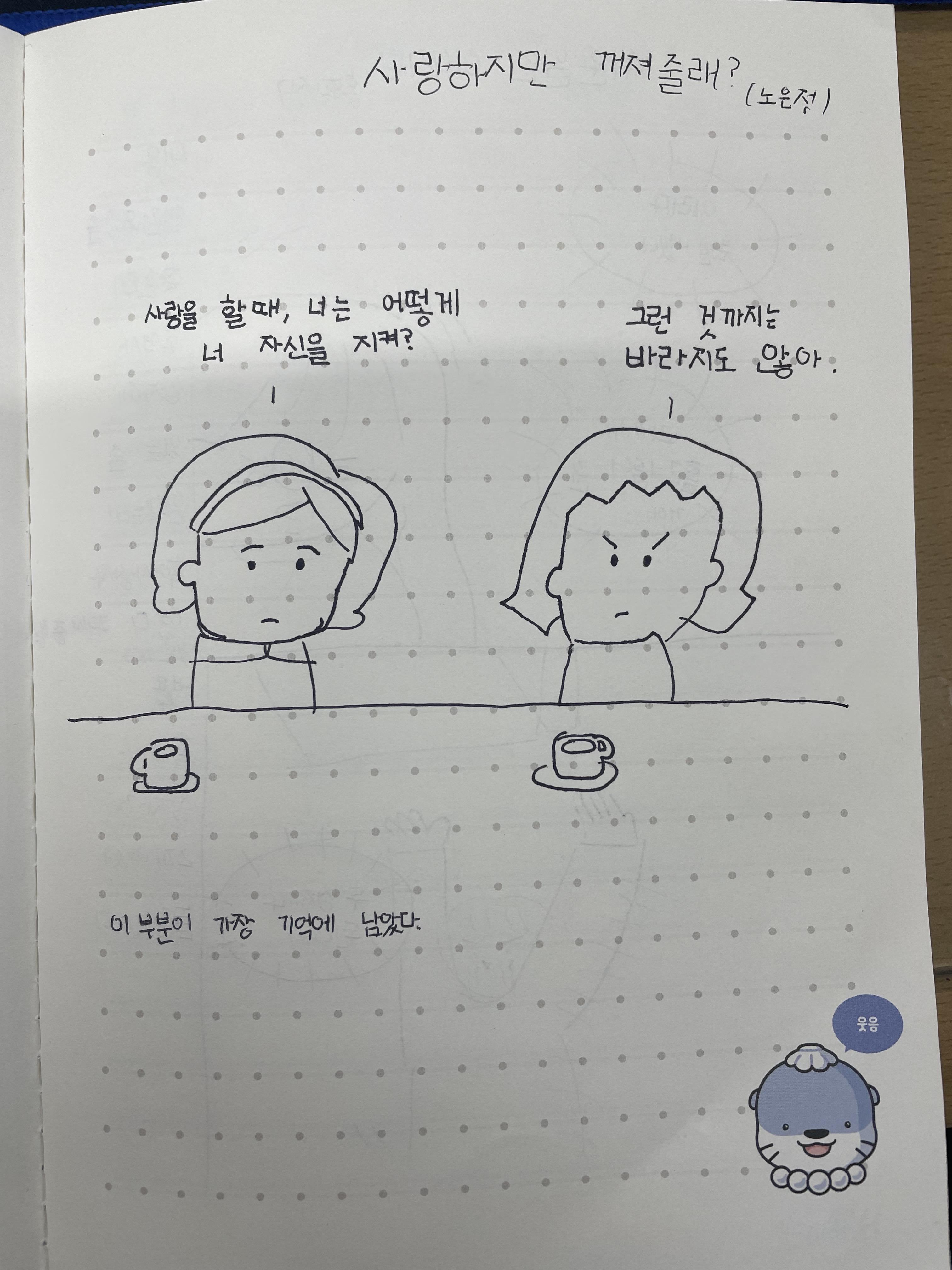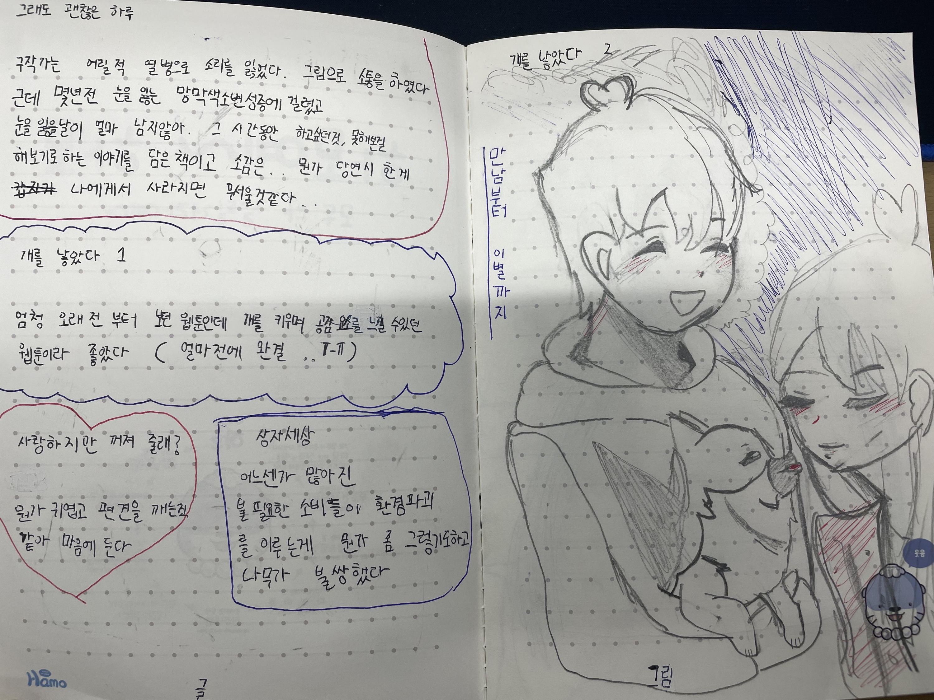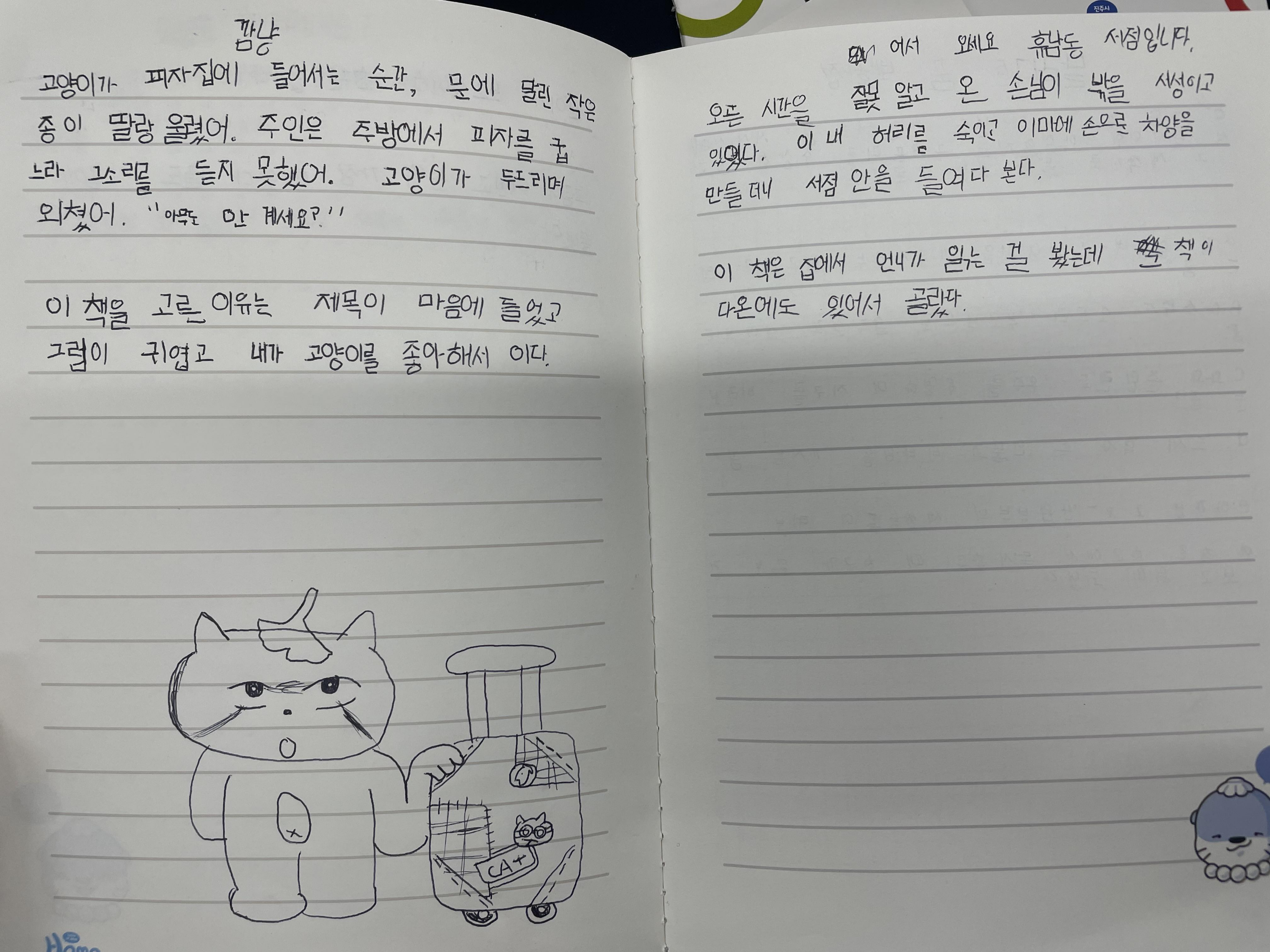 글로 작성하기가 어렵다면 그림으로 표현허는 것도 좋습니다. 감상문은 하나의 기록일 뿐, 즐겁고 편하게 책과 가까워지는 것이 독서의 첫걸음 아닐까요?