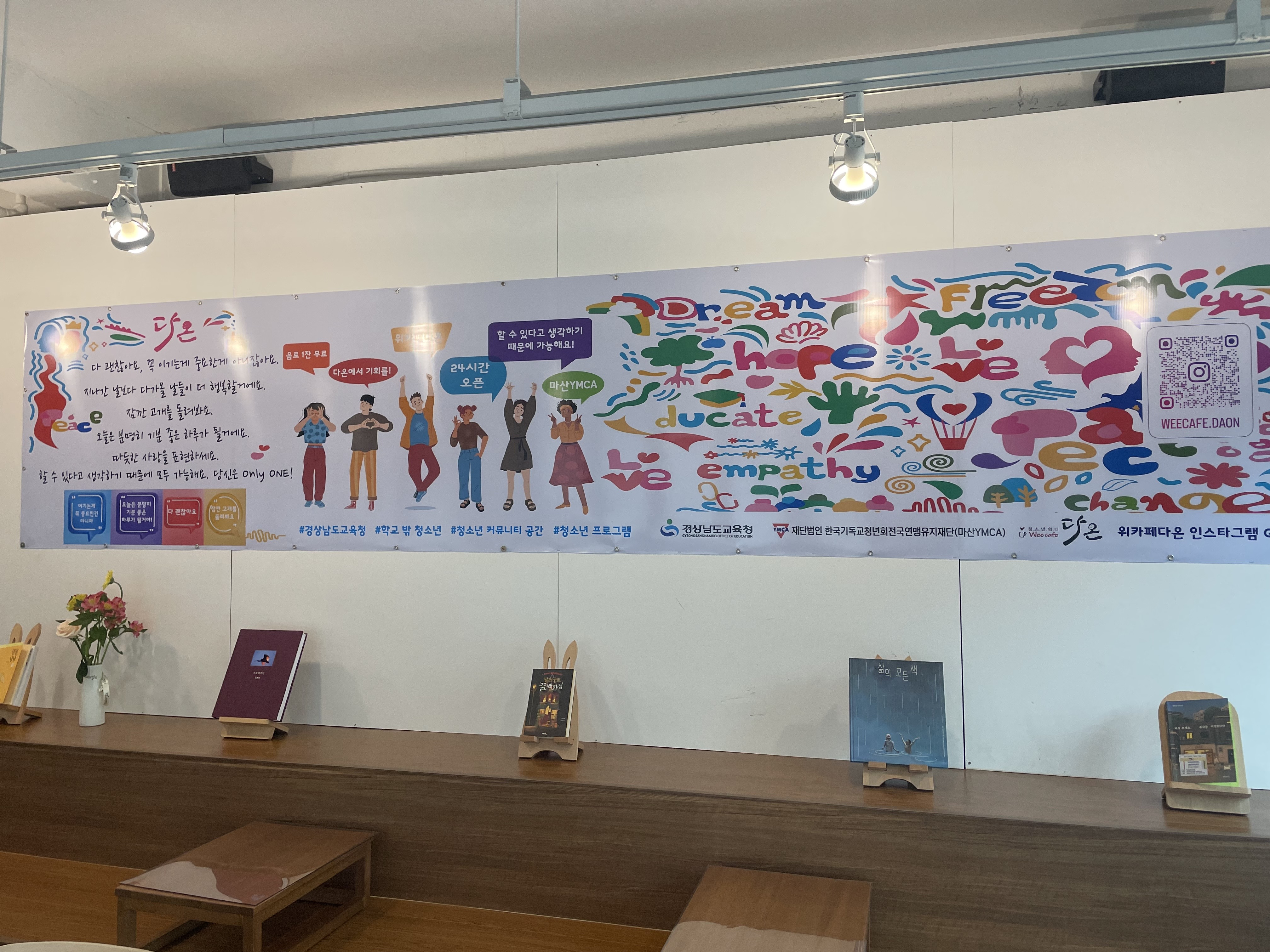 편안한 독서 환경과 대채로운 독서 프로그램을 통해 청소년의 독서 활동을 독려하는 위카페다온! 청소년의 독서가 자연스러워지는 북카페가 되기를 기대해 봅니다.
