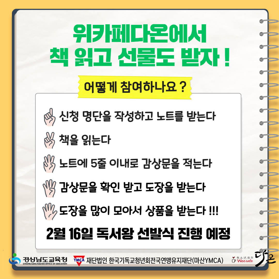 1월 12일부터 위카페다온에서는 ‘청소년 독서왕 대회’를 진행하고 있습니다.
