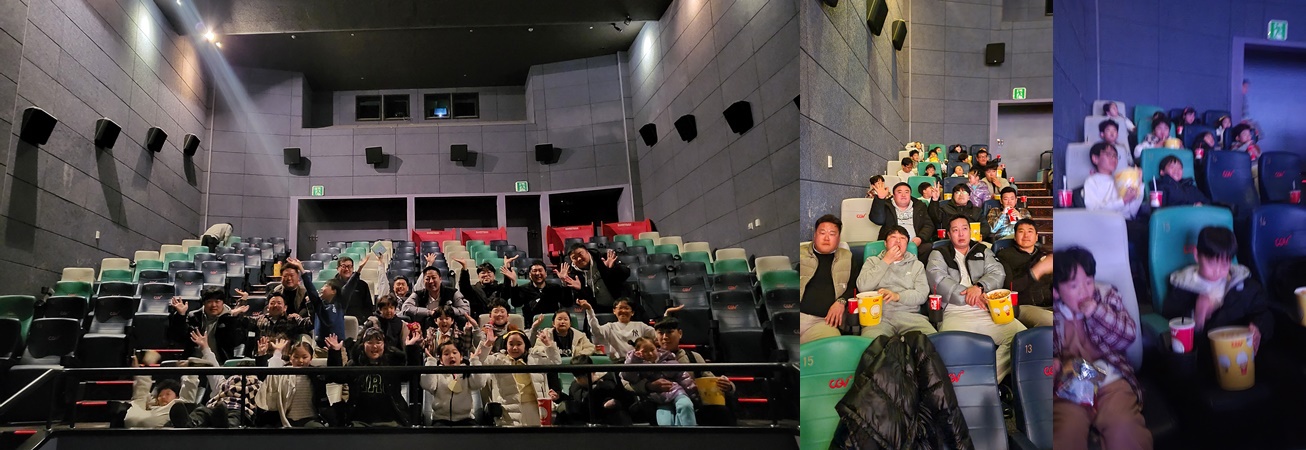 영화는 요즘 어린이들에게 가장 인기있는 웡카로 결정하였습니다. 더빙판으로 영화를 예매했습니다. (나는 생각지도 못했지만) 서기와 총무의 세심함을 느낄 수 있었습니다. 영화관에 들어섰고 예매한 좌석에 약 30명의 대규모 인원이 착석을 하니 좋은아빠와 아이들이 영화관을 점령한 듯한 착각이 들었습니다.