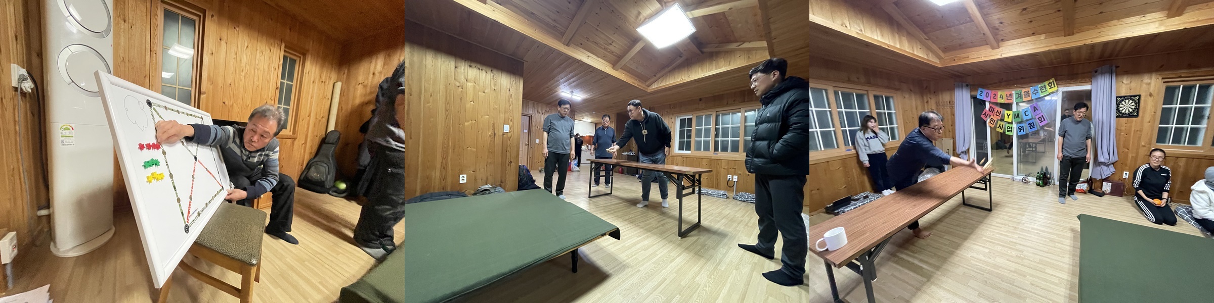드디어 시민사업위원회 수련회의 실질적인 목적이자 목표인 ‘윷놀이’기 시작되었습니다. 지금까지 지역으로 나누던 팀을 이번에는 가장 공정한 방식인 가위바위보로 팀을 정했습니다. 1팀 김태석 이종호 이지순 염진아 / 2팀 김재현 이인안 김정하 옥명훈 / 3팀 허정도 유청준 조정림 박가영 이렇게 정해졌고 국제 규격 경기장도 직사각형 테이블 두 개를 합쳐 정사각형으로 만들고 낙이 많이 나온다 안나온다로 목소리가 커지니 공사장 소음도 이보다 나을거라는 생각을 하며 어쨌든 시작은 됐습니다.