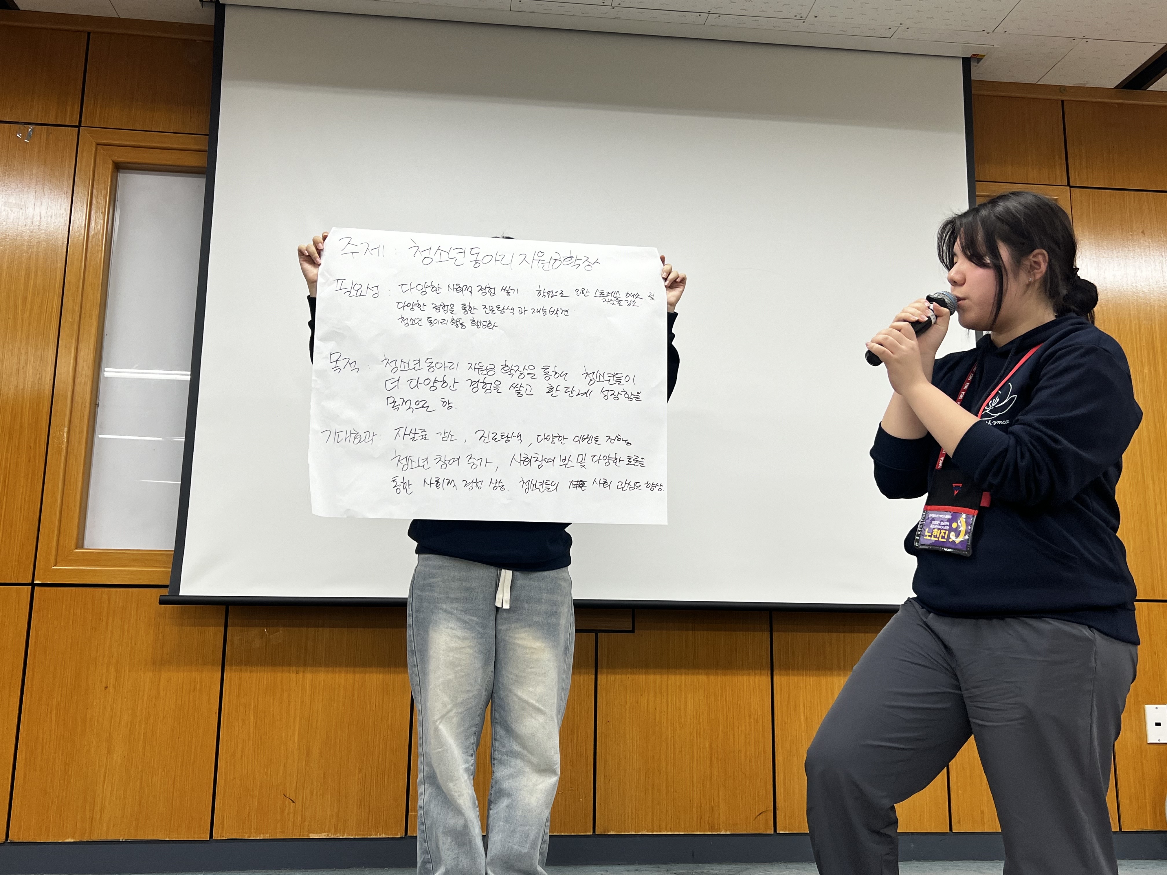 그리고 대망의 전국과제 토론이 진행되었습니다. 지역에서 전국과제로 삼고 싶은 주제들을 이야기 하고, 유목화 시키는 과정을 거쳐 6가지 주제로 심도 있는 토론을 진행하였습니다. 토론하는 과정을 통해 서로가 궁금해 하는 것을 물어보고 고민한 뒤 투표를 통해 "청소년참여권"이 정해졌습니다! 이 전국과제로 지역으로 돌아가 청소년회원들과 토론을 통해 지역에서 활동을 이어나가기로 하였습니다!