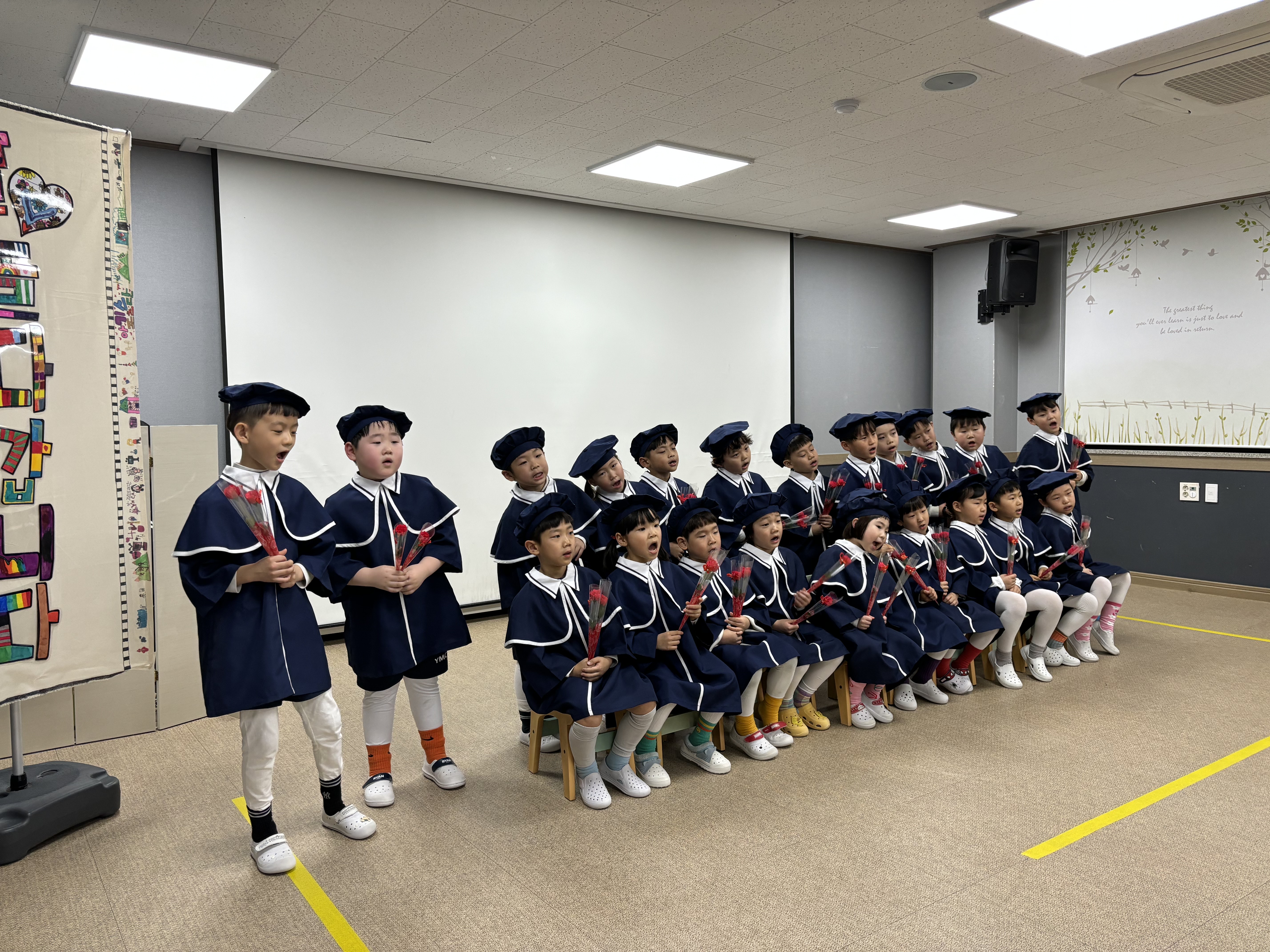 아기스포츠단은 7세 졸업식을 특별 공연으로 진행 합니다. 그 동안 아기스포츠단을 보내주셨던 감사한 부모님들을 모셔 아이들과 교사들이 준비한 여러 공연을 펼칩니다. 아이들이 준비한 특별 댄스와 그 동안 국악 시간에 배웠던 장구, 북, 징, 꽹과리를 가지고 사물놀이을 공연을 하기도 하고, 오카리나의 실력을 뽐내기도 하였습니다. 그리고 스승의날에 선생님께 불려 드렸던 개사한 노래를 부르기로 하였지요. 사물놀이 공연은 전문 공연단을 보는듯 감탄스러웠으며, 선생님들이 준비하셨던 영상은 감동과 슬픔으로 눈물이 흐르기도 하였습니다.