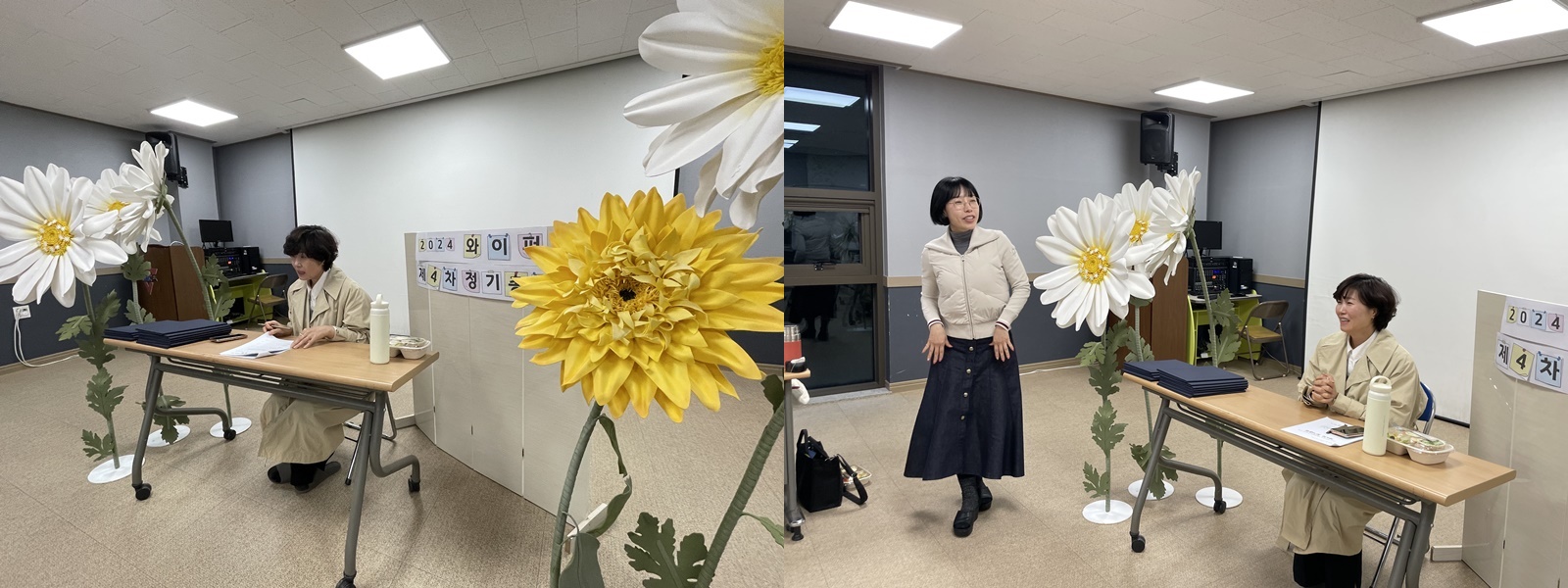 임원 선출 결과, 회장은 이서희 선생님, 총무는 김미란 선생님, 서기는 정은옥·김영미 선생님이 당선되었습니다. 소감을 나누고 모두의 축하가 오가는 가운데 제4차 정기총회 폐회가 선언되었습니다.