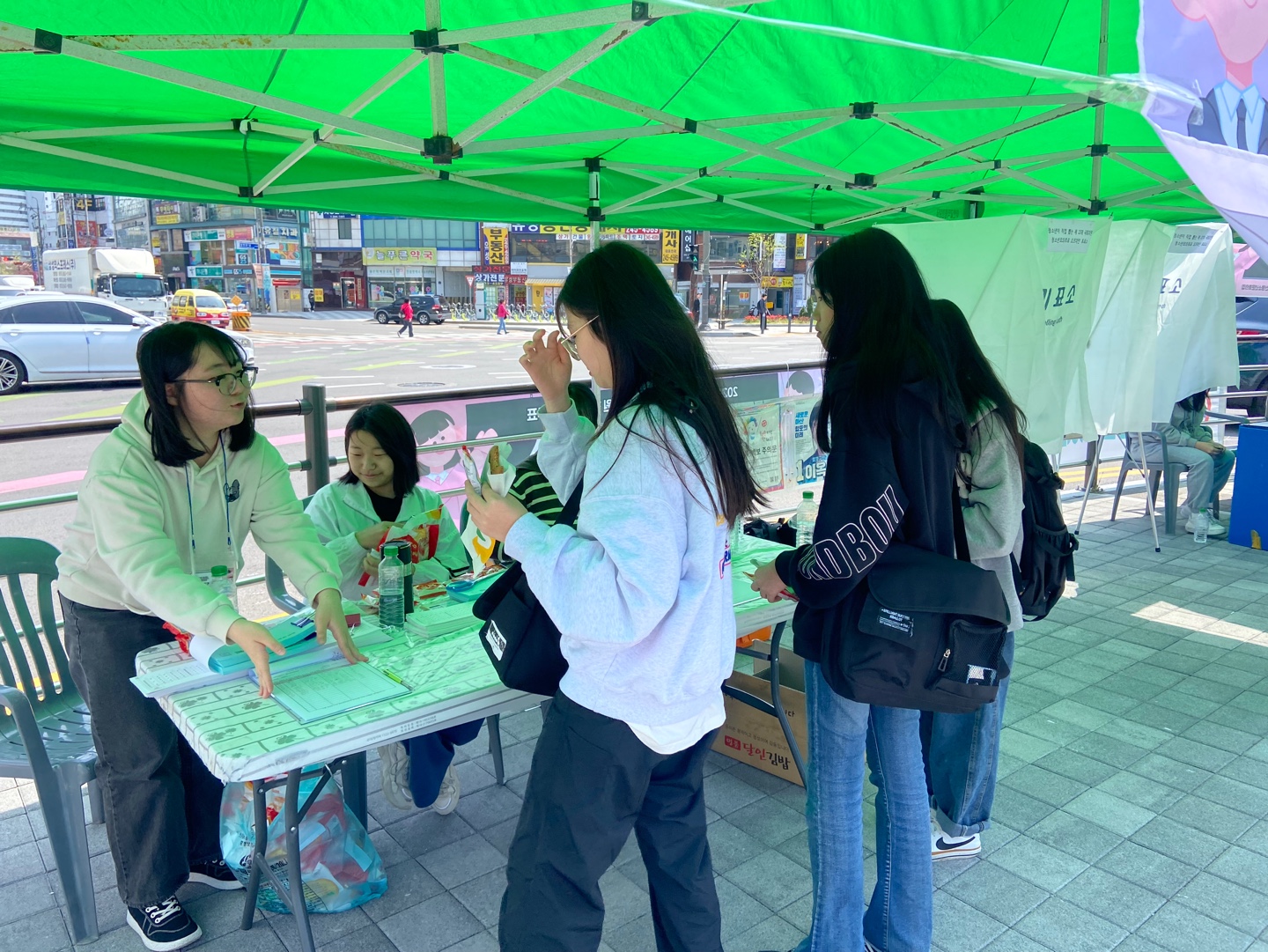 오후 12시부터 길 가다가 알게 되어 모의투표에 참여하는 청소년, 학교에서 친구들이 알려줘서 오프라인 투표에 참여하고 싶어 찾아온 청소년들이 오기 시작하였습니다.
