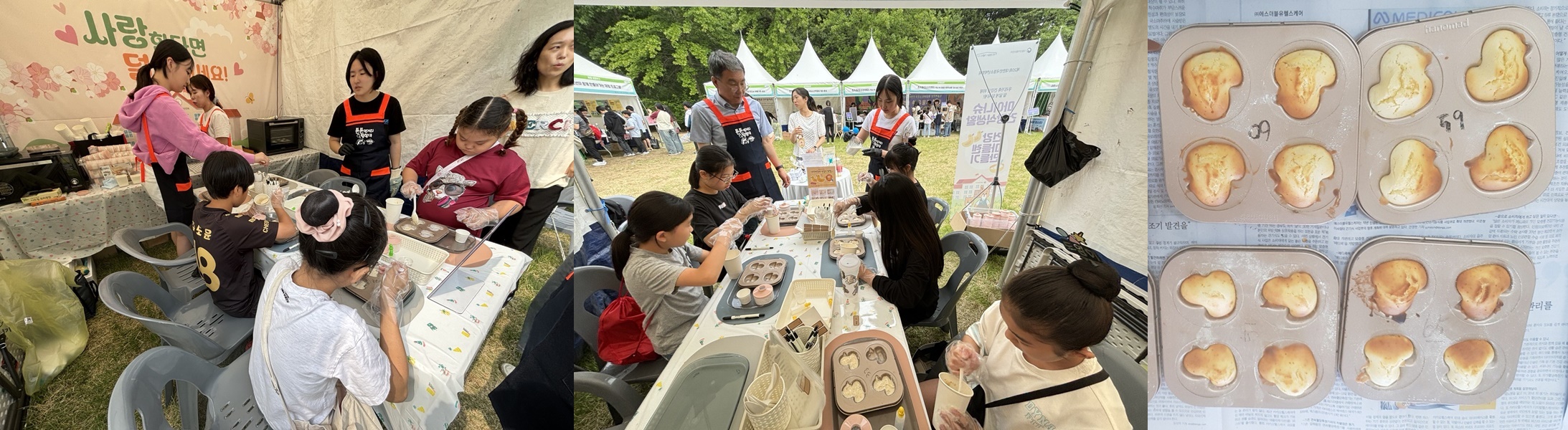 그중에도 단연 최고의 부스 튼튼먹거리입니다. 천안에선 저당, 저염 먹거리 교육과 간식 만들기 체험을 진행하여 내 손으로 직접 건강한 레몬 마들렌 만들기 체험을 진행하였습니다. 저희가 준비한 튼튼오리 마들렌은 보통 마들렌보다 설탕을 8g 적게 넣고, 박력분, 아몬드가루, 베이킹파우더, 레몬즙, 우유, 레몬껍질, 식물성오일을 이용해서 더 맛있고 몸에도 좋은 마들렌입니다.