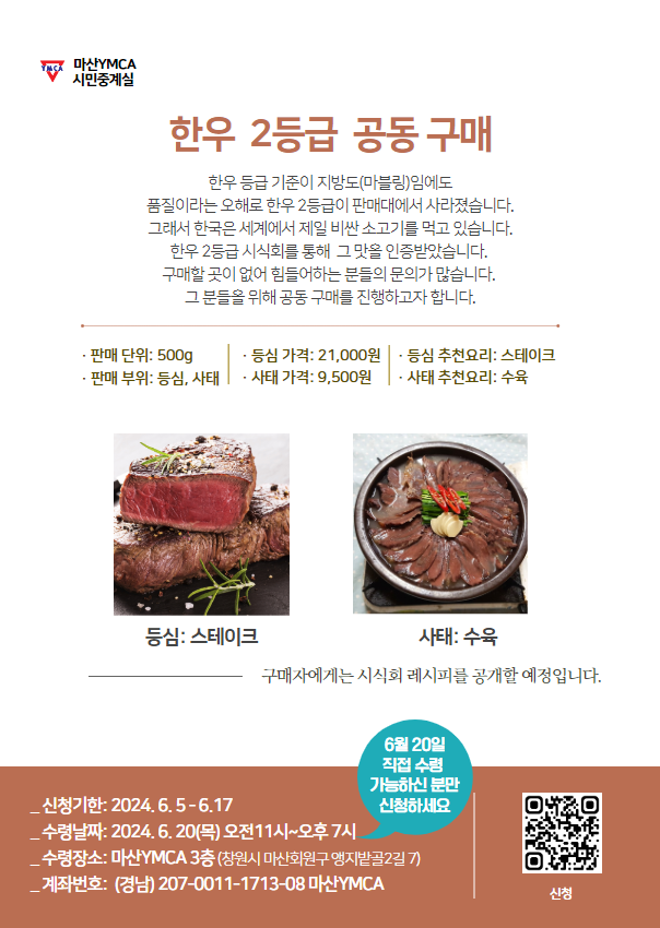 | YMCA 소잡는 날, 2등급 한우 1/4마리 판매 (0) | 2024.07.01 |