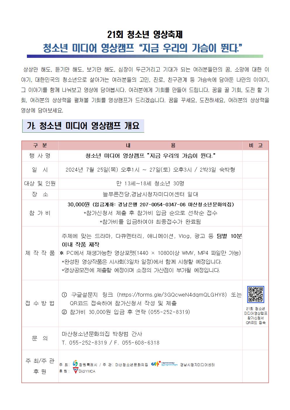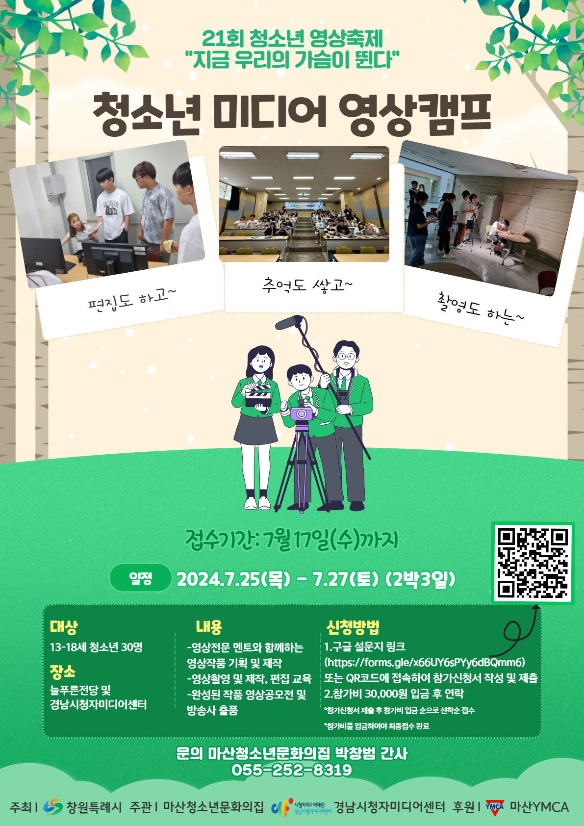 21회 청소년 미디어 영상캠프에 청소년 여러분들을 초대합니다~!