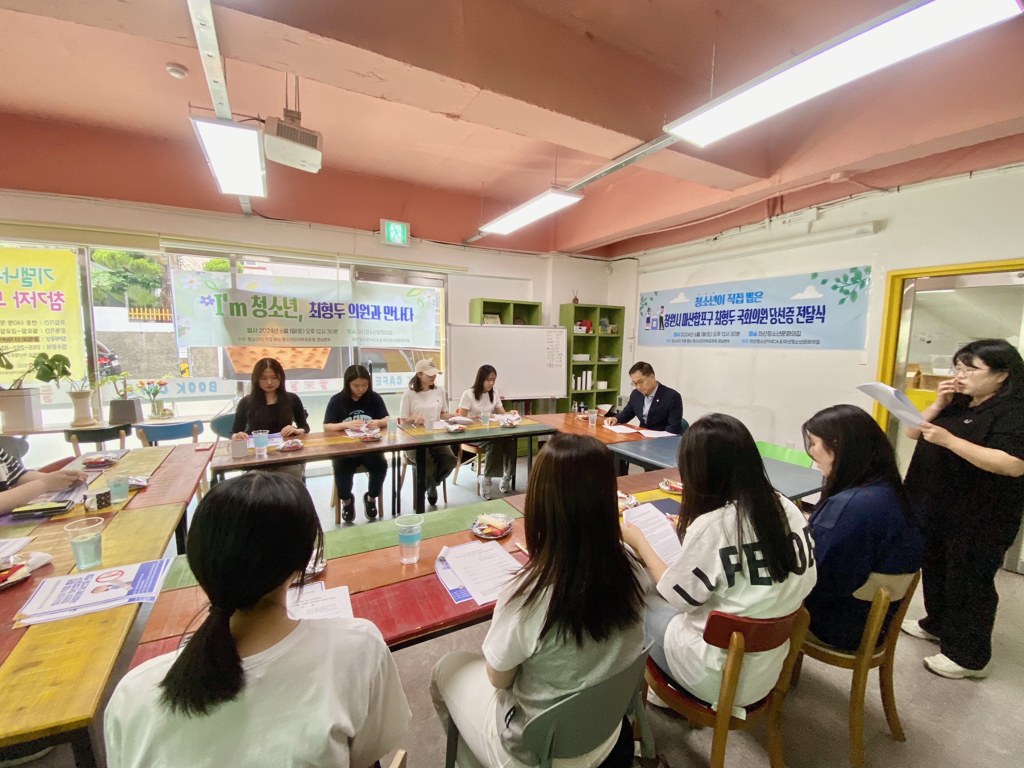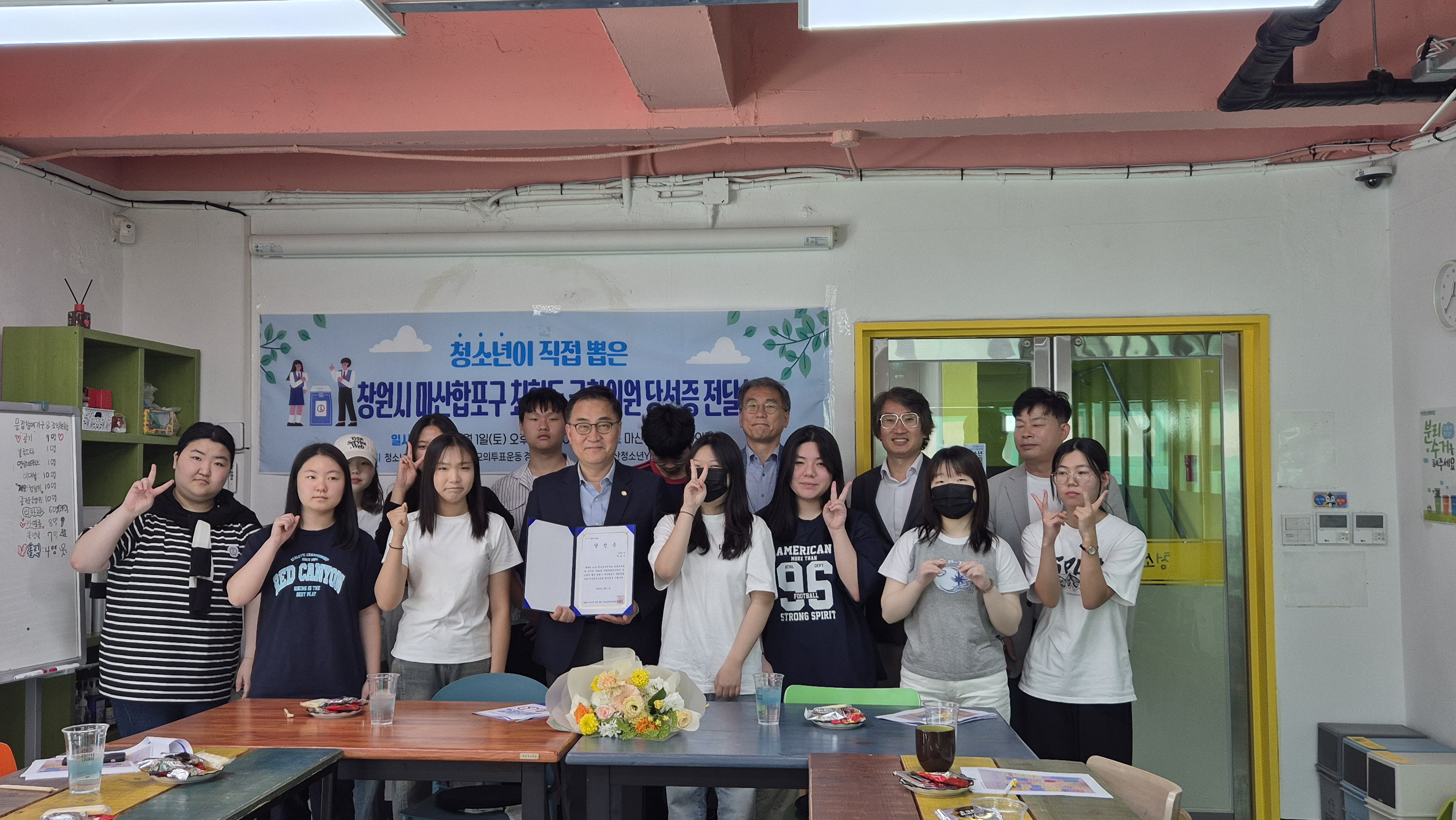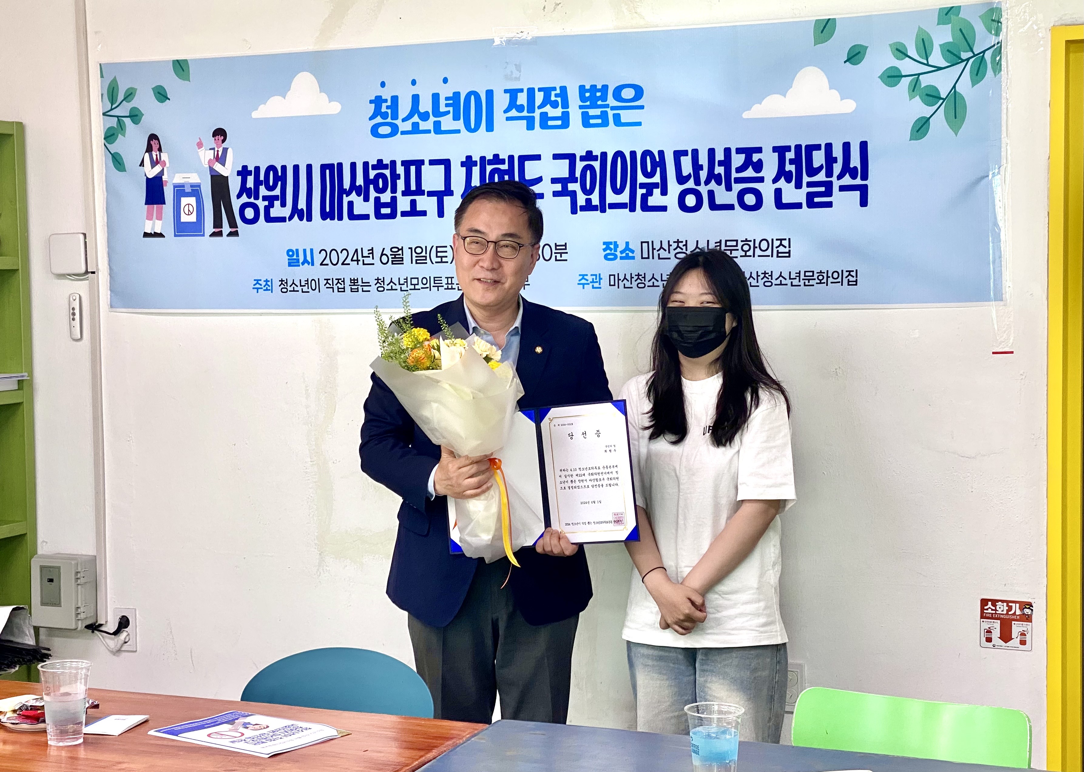 지난 6월 1일 마산청소년문화의집에서 청소년들이 직접 뽑은 국회의원에게 당선증 전달식이 진행되었습니다.