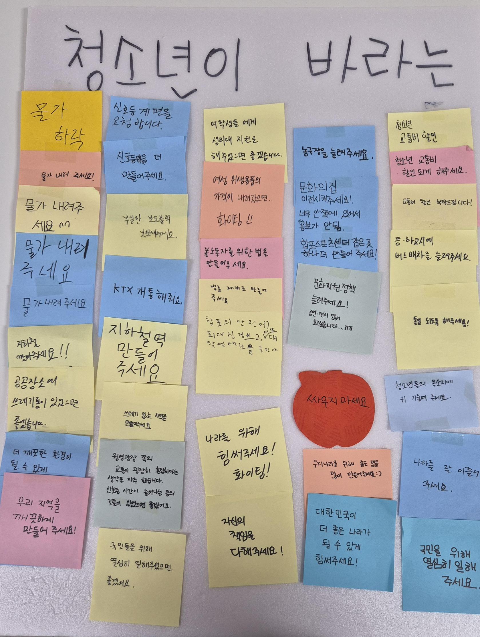 당선증전달과 간담회는 아쉽게 끝났지만 이후 청소년들의 목소리를 어떻게 전달 할 수 있을지 고민해보는 시간을 가질 수 있었습니다.