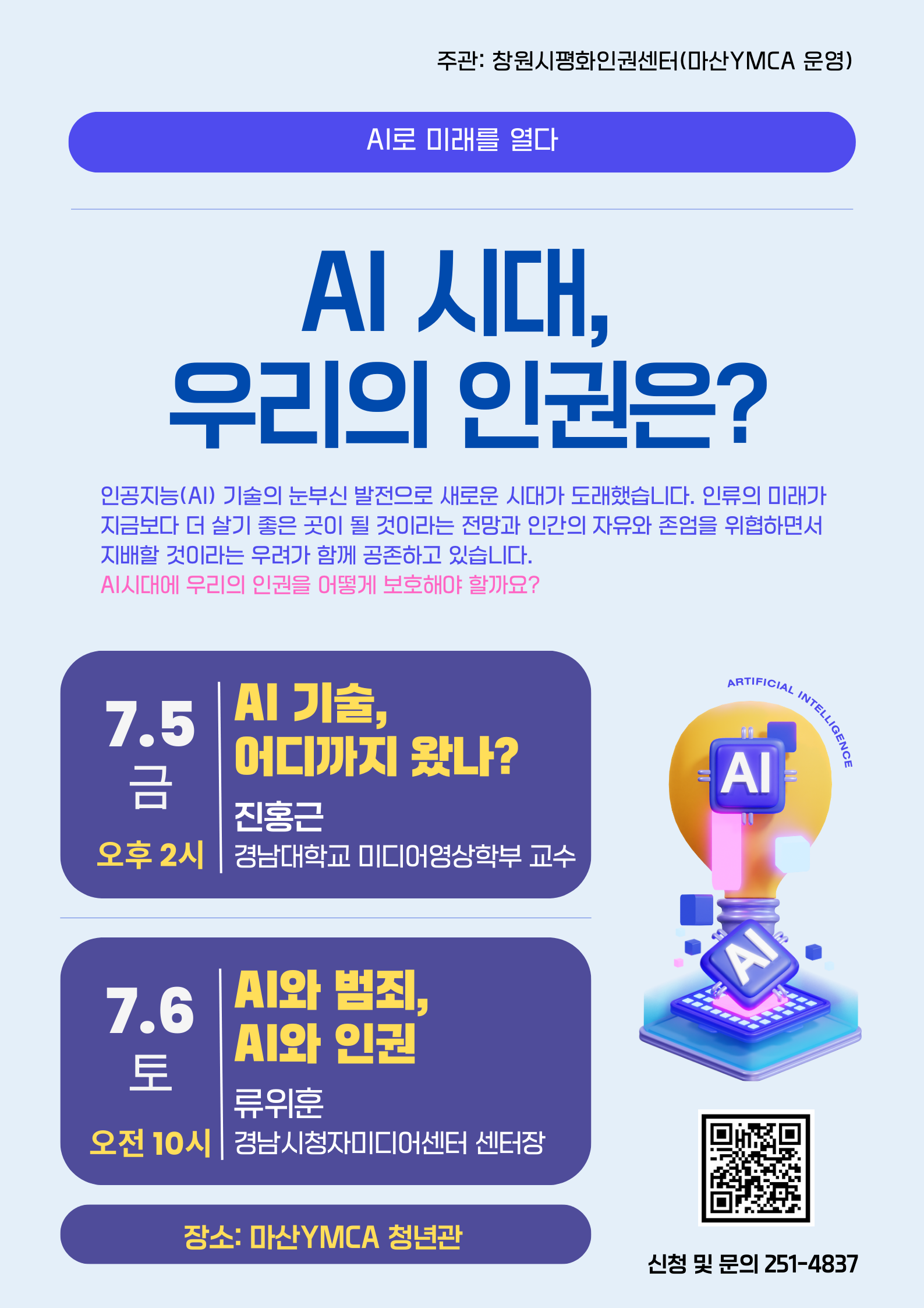 강좌를 놓쳐 아쉽다면 아래의 7월 5일 금요일에 진행되는 진홍근 교수의 AI 기술, 어디까지 왔나? 에 많은 관심 부탁드립니다.