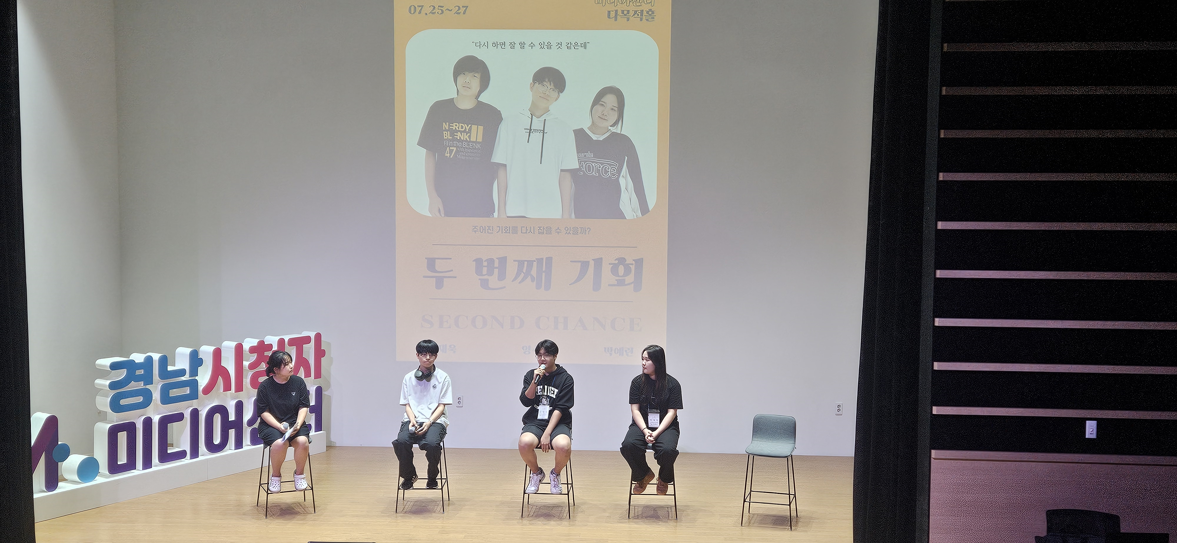 바로 청소년들이 직접 토크쇼 형태의 제작발표회를 진행하였는데요. 직접 포스터도 만들고 대본도 짜고 영상도 만들고 말 그대로 청소년들이 직접 만들어가는 청소년 영상캠프였습니다.